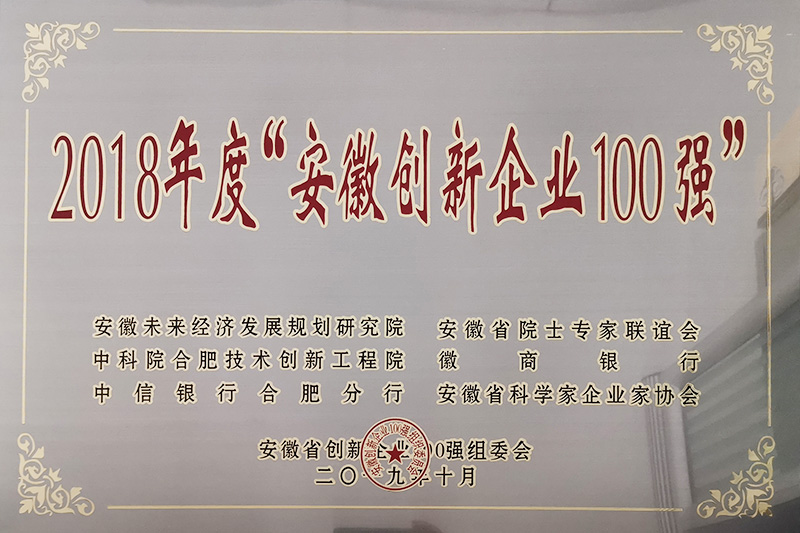 2018年度“安徽創(chuàng)新企業(yè)100強